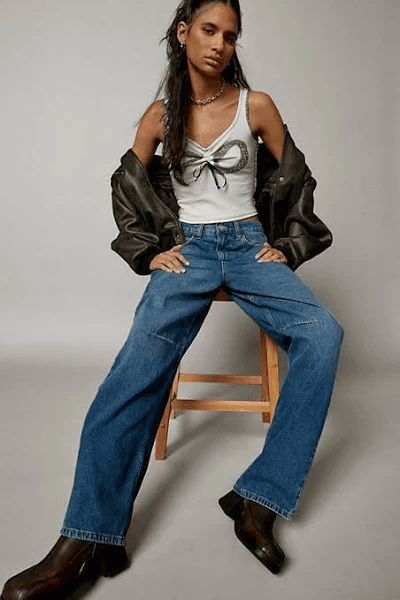 Inyecta un espíritu desenfadado y cómodo a tu vestuario con estos jeans amplios.